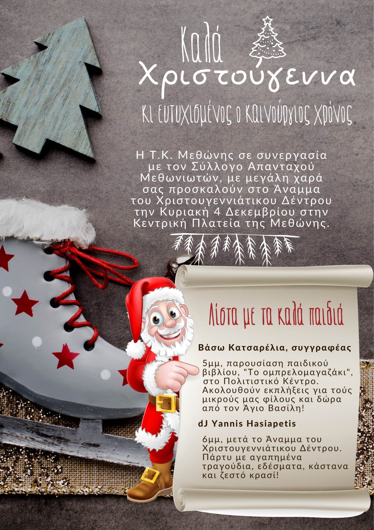Άναμμα χριστουγεννιάτικου δέντρου στην Κοιν. Μεθώνης Κυριακή 4 Δεκεμβρίου 2022 και ώρα 18:00