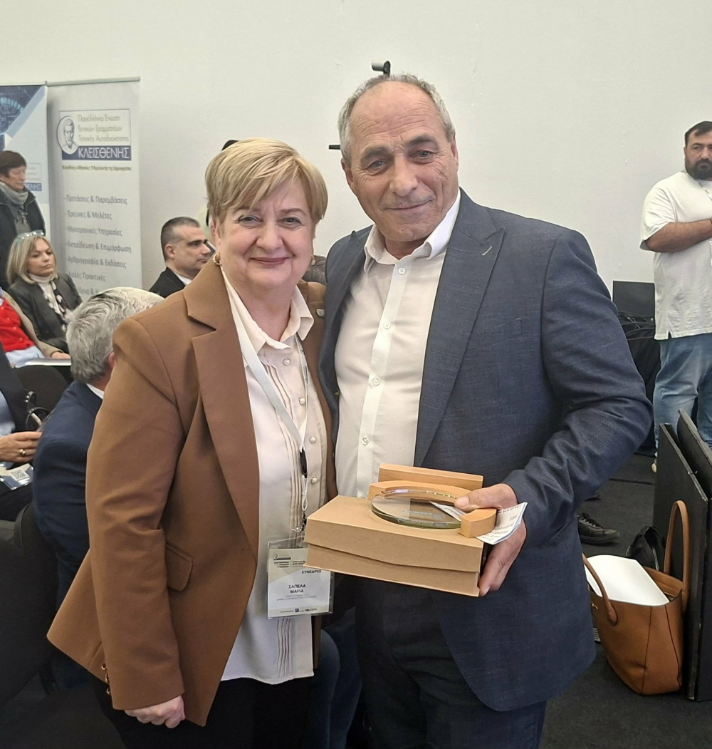 Με μεγάλη χαρά και τιμή παρέλαβα τη βράβευση εκ μέρους του Δήμος Πύδνας Κολινδρού στο πλαίσιο του επιστημονικού συνεδρίου «Κλεισθένης», που διοργάνωσε η Πανελλήνια Ένωση Γενικών Γραμματέων Δήμων και πραγματοποιήθηκε στις 26–28 Μαρτίου 2026 στον εκθεσιακό χώρο της ΔΕΘ HELEXPO στη Θεσσαλονίκη.