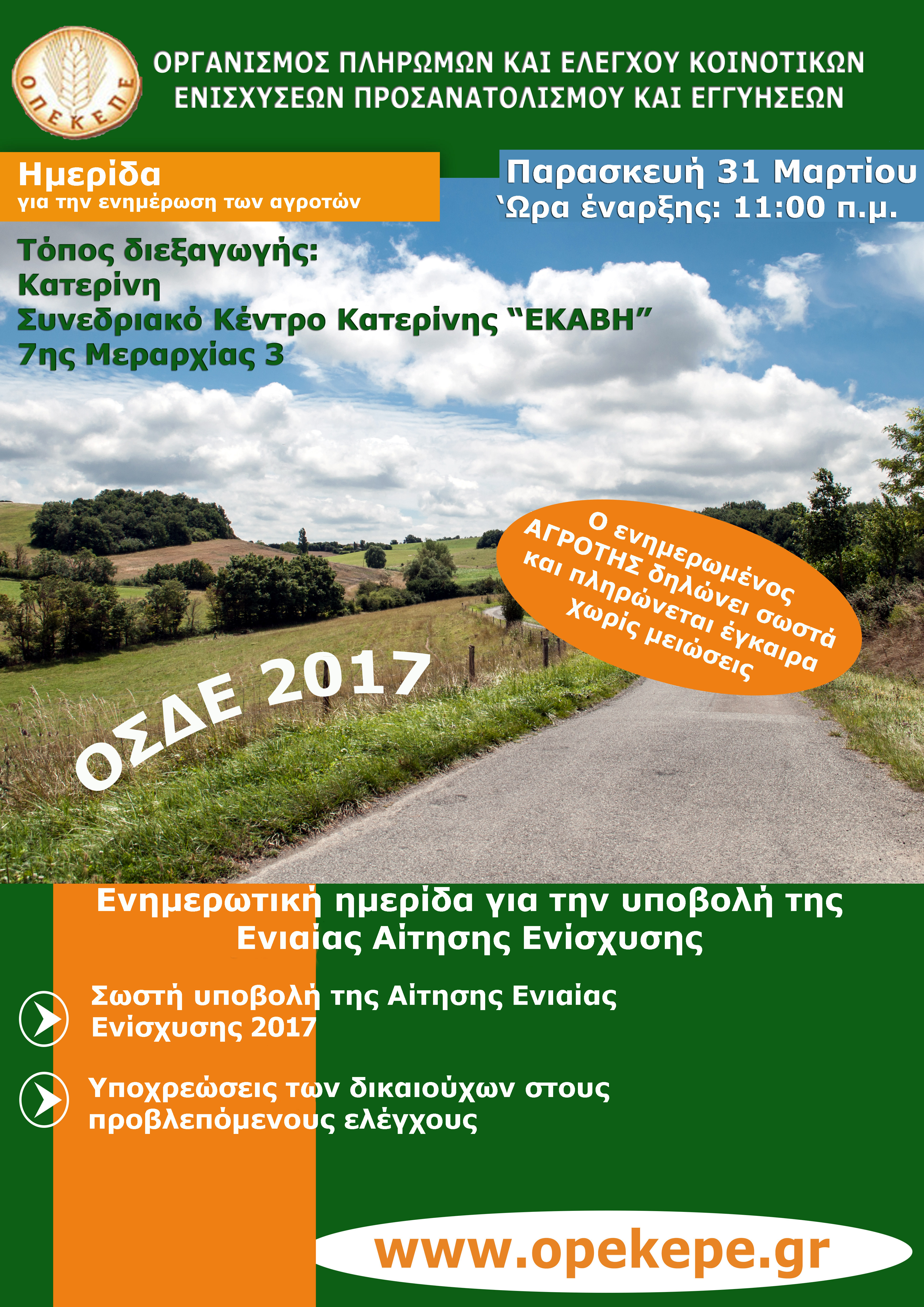 Ενημερωτική ημερίδα του ΟΠΕΚΕΠΕ για τους αγρότες του Νομού Πιερίας