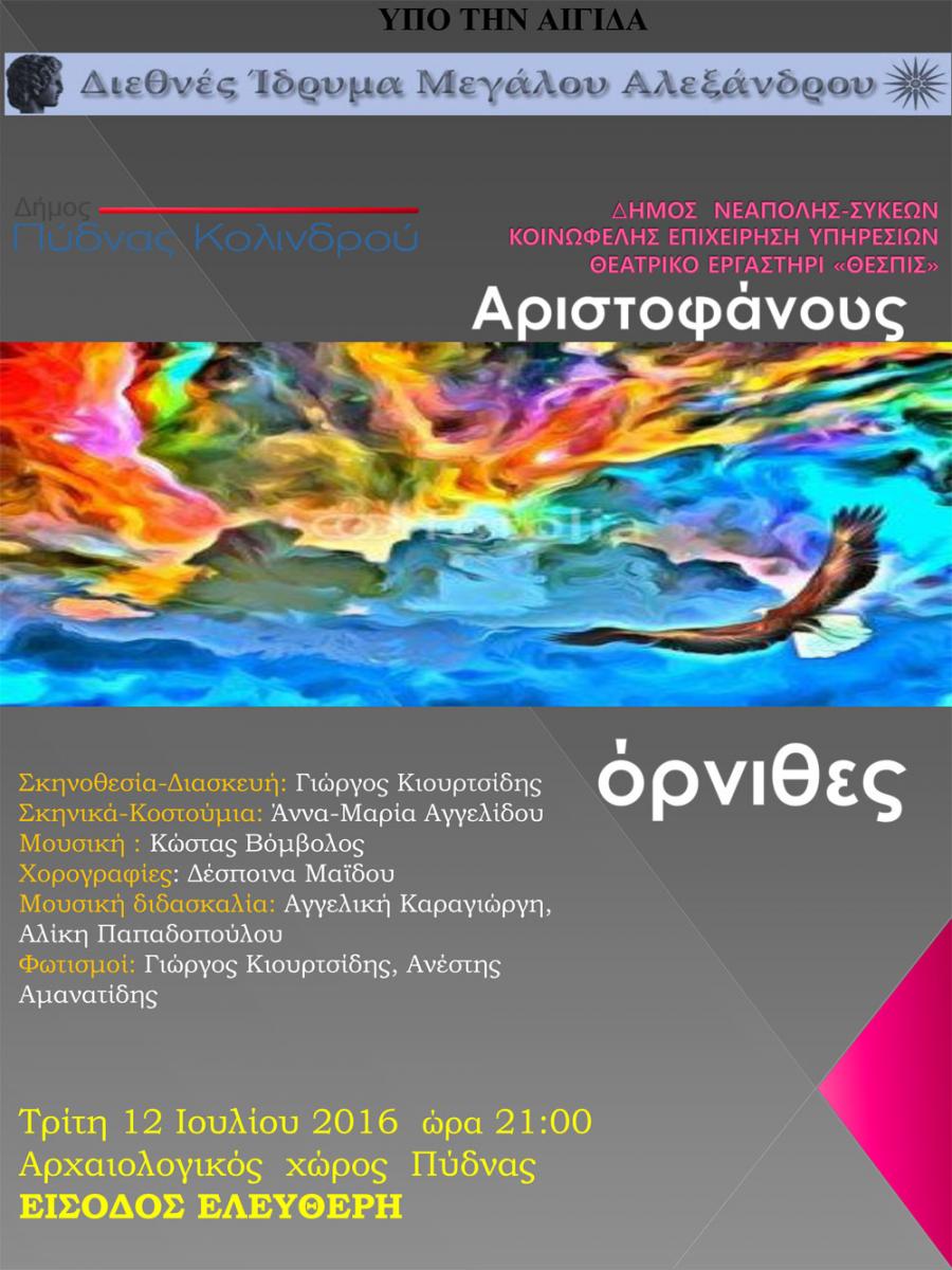 "Ορνιθες" του Αριστοφάνη-Αρχαίο Θέατρο Πύδνας - Τετάρτη 13 Ιουλίου 2016