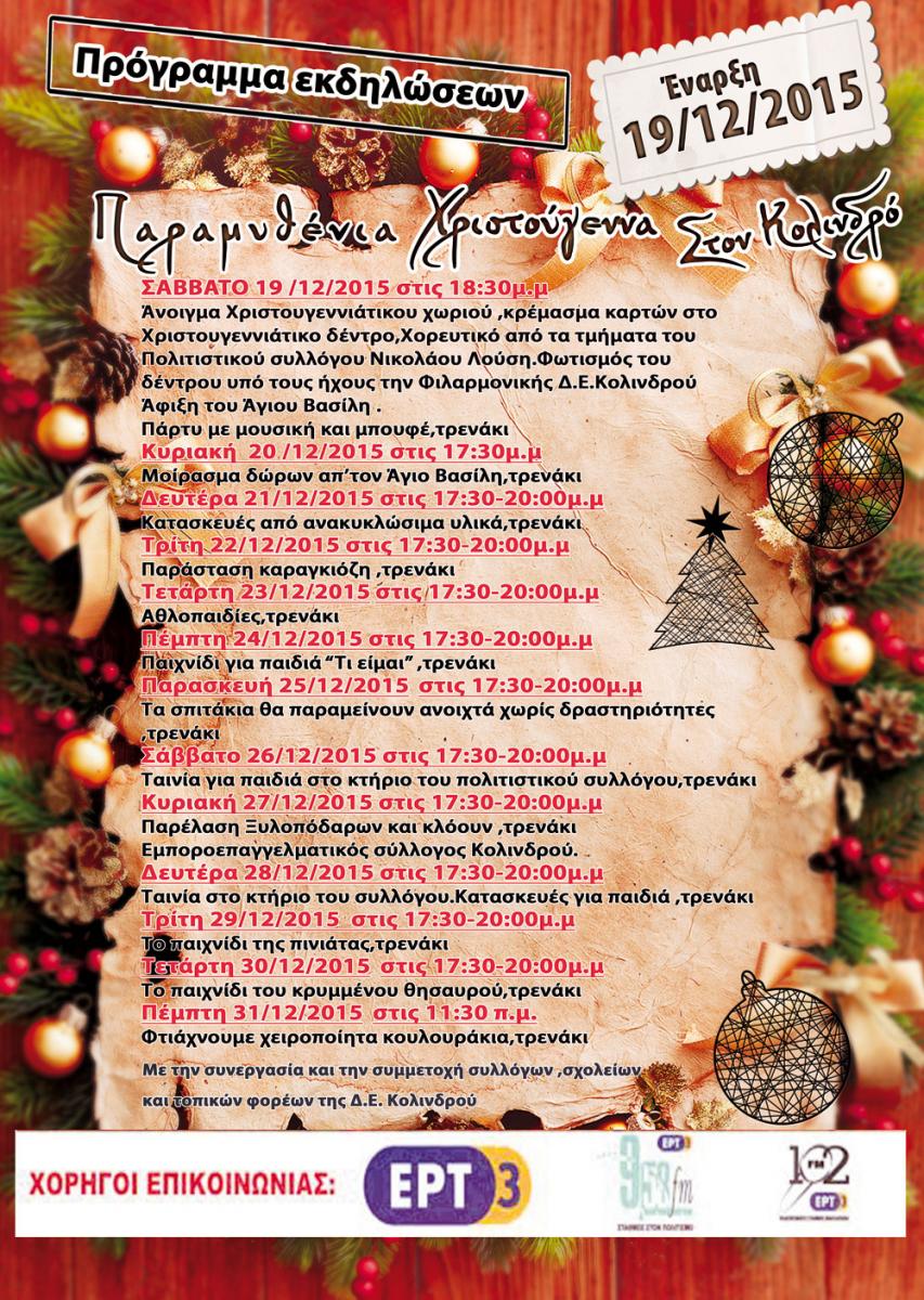 Πρόγραμμα εκδηλώσεων "Παραμυθένια Χριστούγεννα" στον Κολινδρό απο τις 19-12-2015 έως στις 31-12-2015