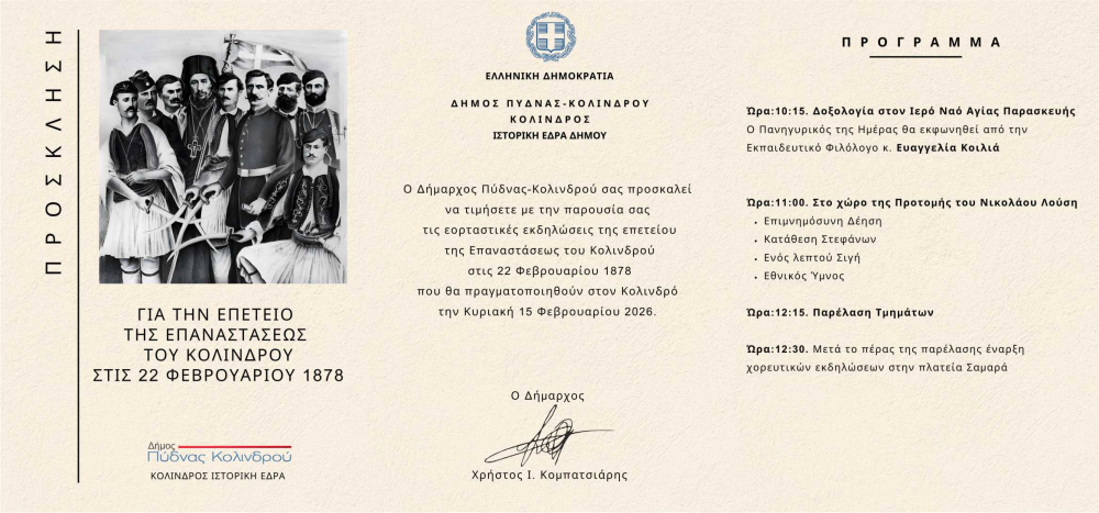 τις εορταστικές εκδηλώσεις για την επέτειο της