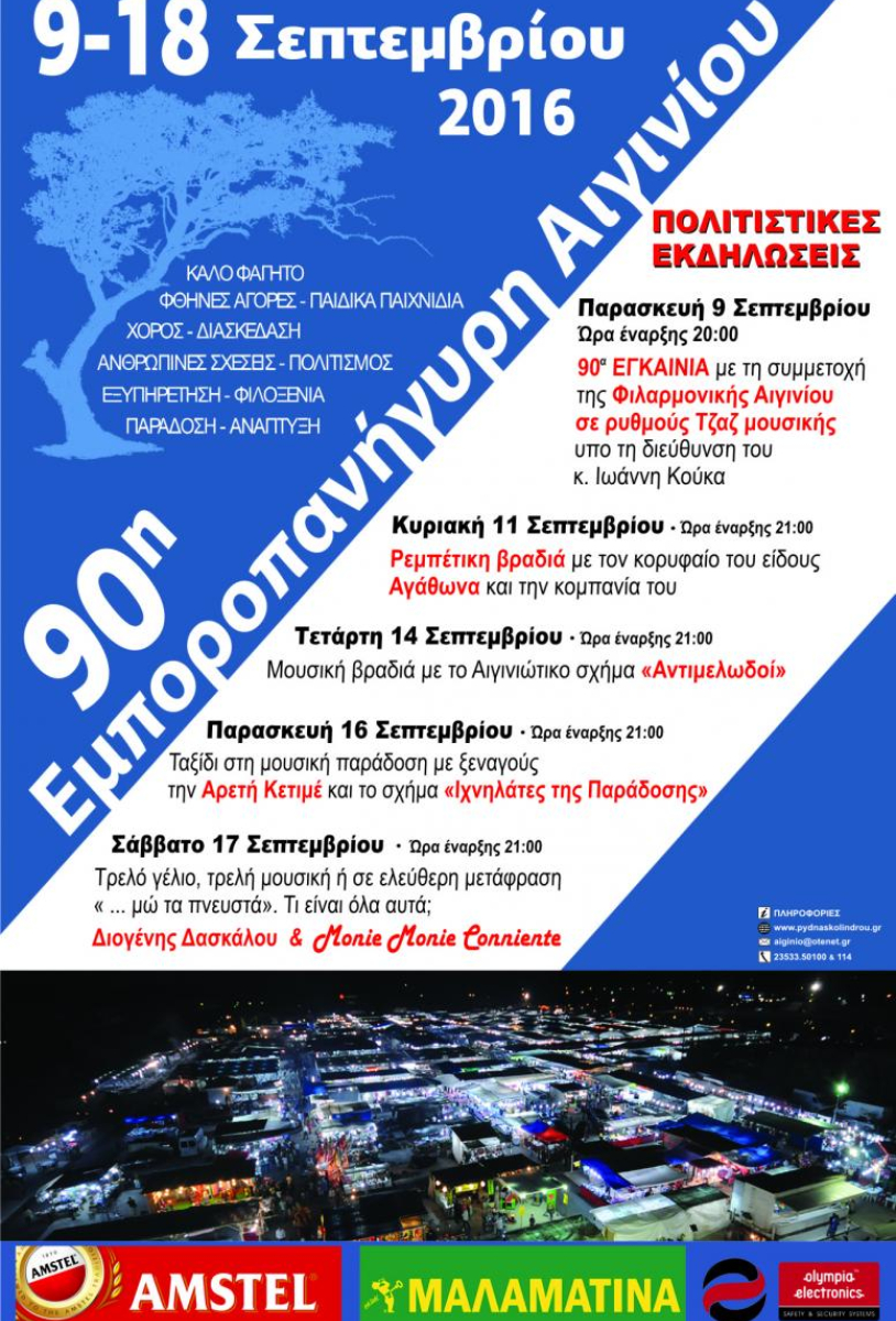 Πολιτιστικές Εκδηλώσεις 90ης Εμποροπανήγυρης Αιγινίου