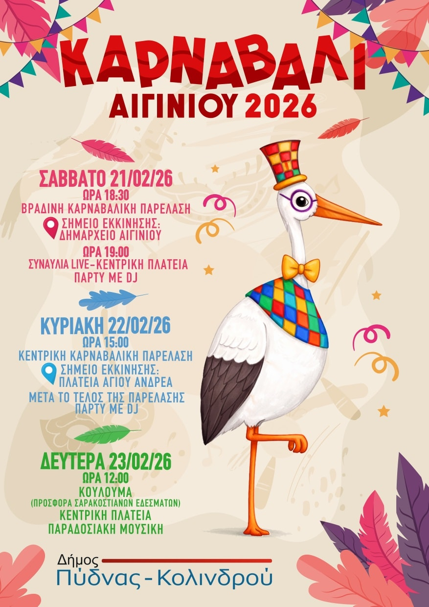 #ΚαρναβάλιΑιγινίου #Απόκριες2026 #ΔήμοςΠύδναςΚολινδρού