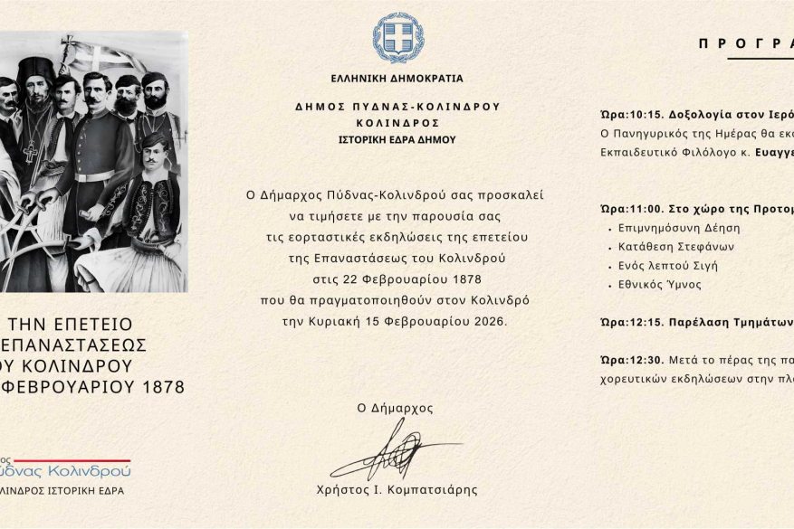 τις εορταστικές εκδηλώσεις για την επέτειο της